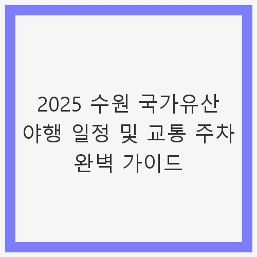 👉2025 수원 국가유산 야행 일정 및 교통 주차 완벽 가이드 알아보기