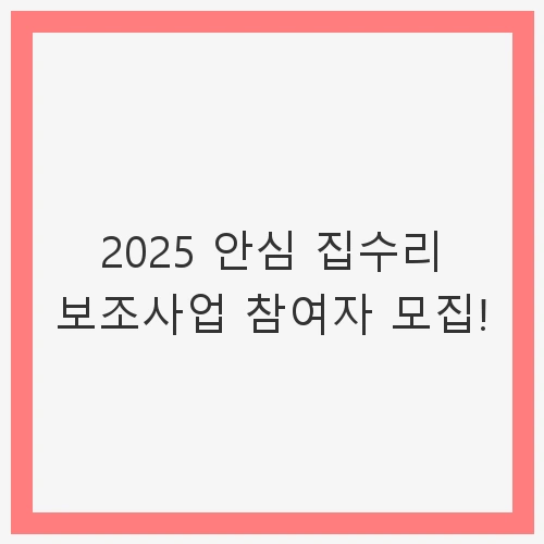 👉2025 안심 집수리 보조사업 참여자 모집! 알아보기